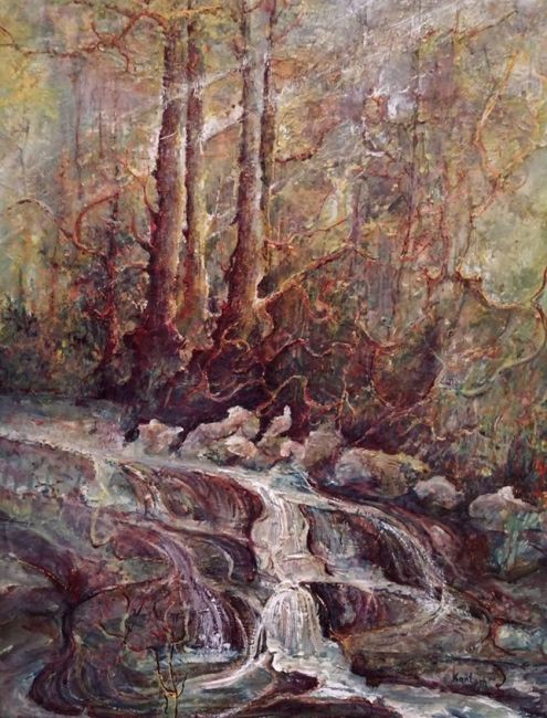 Impresja potoczek w lesie-tempera-werniks półmat-55x65-Kańtoch Mirosław ARTMI