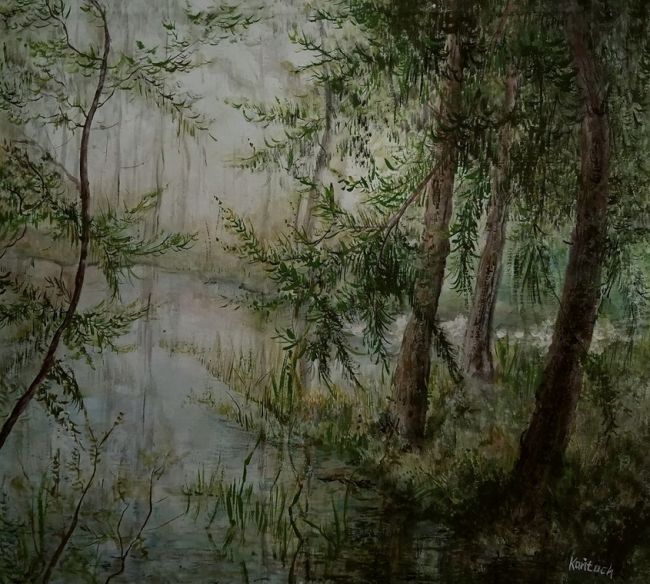 Staw w lesie-tempera-werniks półmat-58x62-Kańtoch Mirosław ARTMI