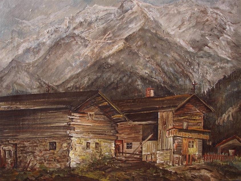 Wioska w Alpach-tempera-werniks półmat-43x56-Kańtoch Mirosław ARTMI