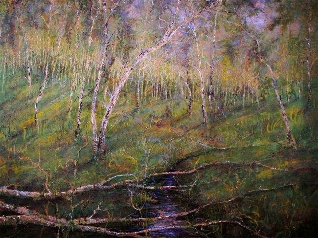 Las Brzozowy-tempera-65x90-werniks półmat-Kańtoch Mirosław ARTMI