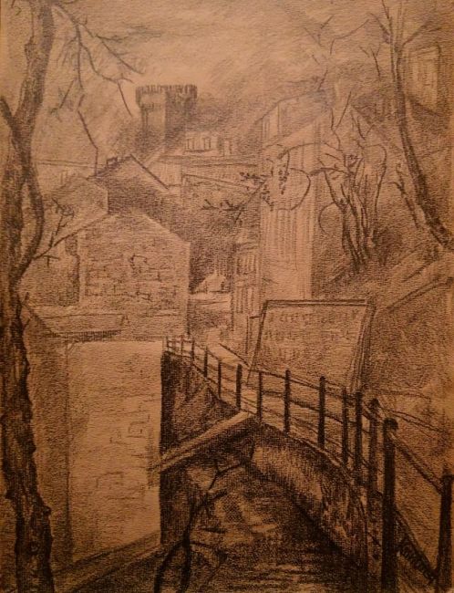 Cieszyńska Wenecja z wzgórzem zamkowym-ołówek+sucha pastel-30x40-Kańtoch Mirosław ARTMI