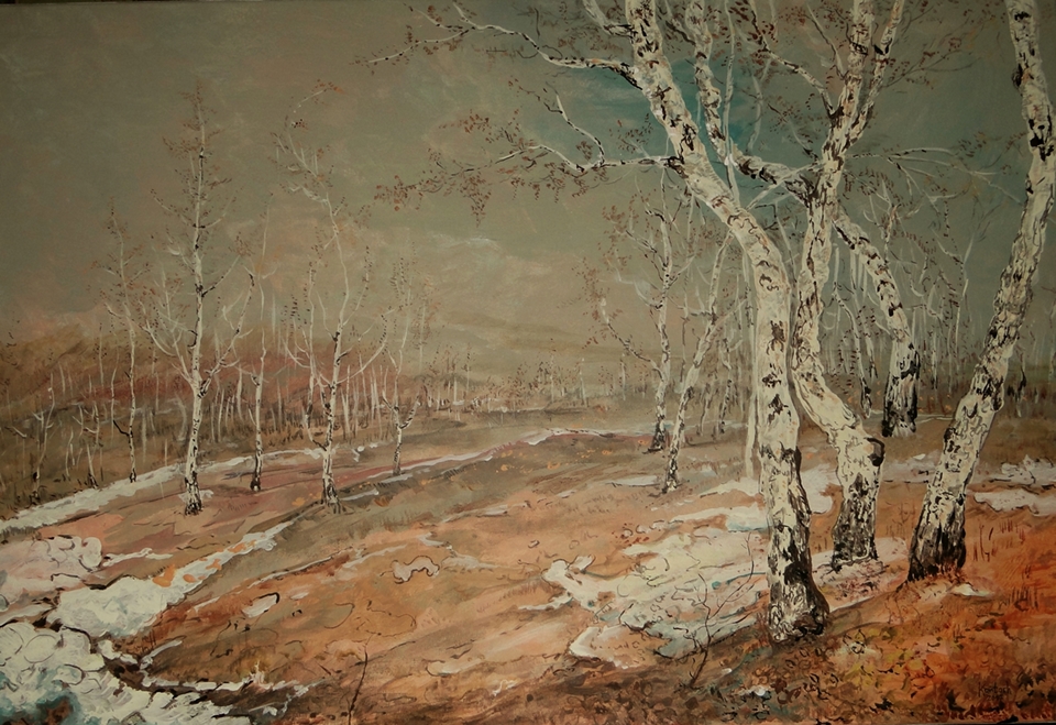 ,,Zimowe brzozy I,,-akryl-60x90-podobrazie-Kańtoch Mirosław ARTMI