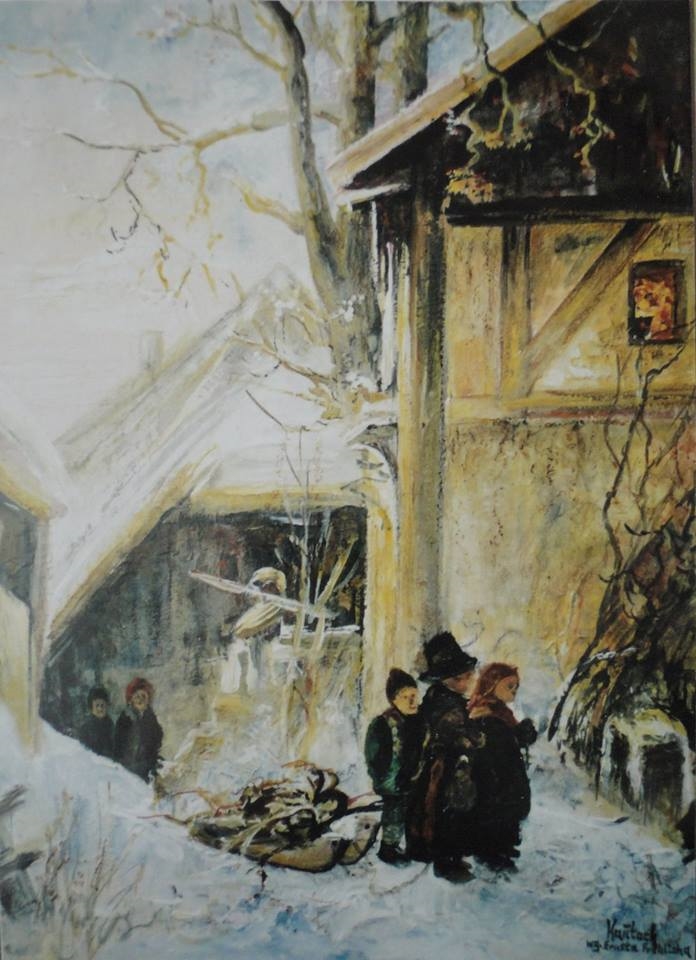 ,,Dzieci z sankami''-olej-50x70-zakupiony w prywatnej kolekcji-Kańtoch Mirosław ARTMI