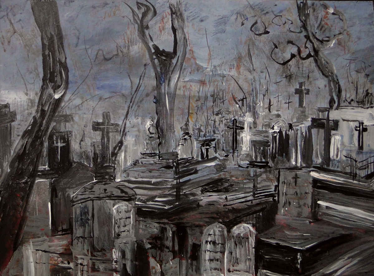 Cmentarz-akryl-zakupiony w prywatnej kolekcji-Kańtoch Mirosław ARTMI