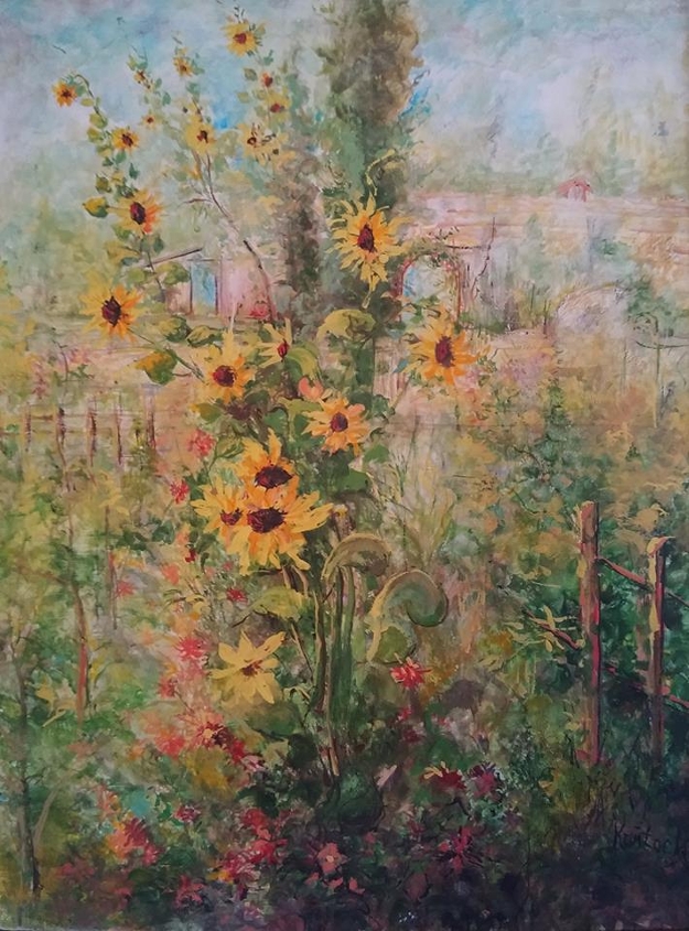 Słoneczniki w ogrodzie-tempera-werniks półmat-43x56-Kańtoch Mirosław ARTMI