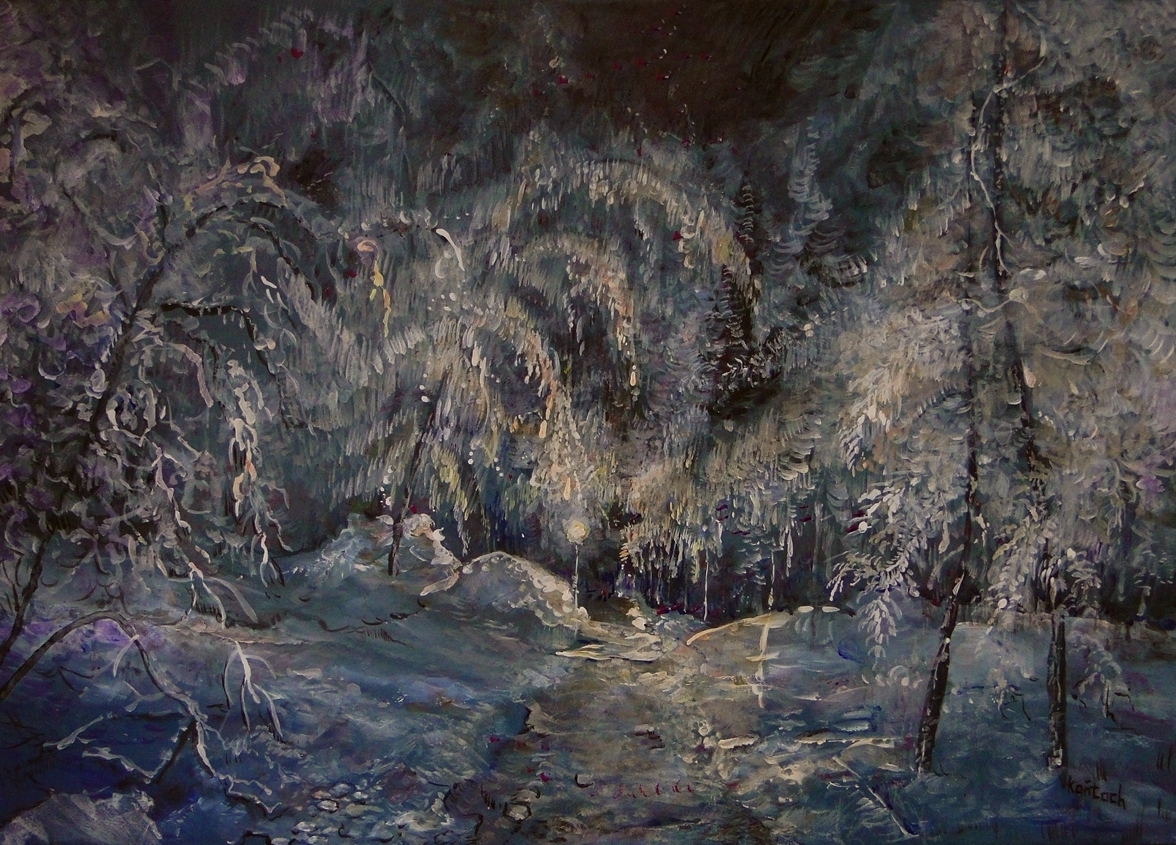 Wieczorny spacer po zimowym parku-akryl-60x80-Kańtoch Mirosław