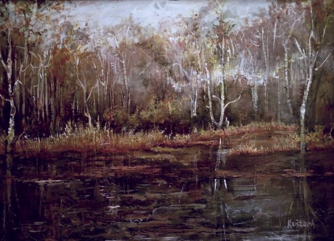 Jesienny staw-akryl-Kańtoch Mirosław ARTMI-obraz znajduje się w prywatnej kolekcji