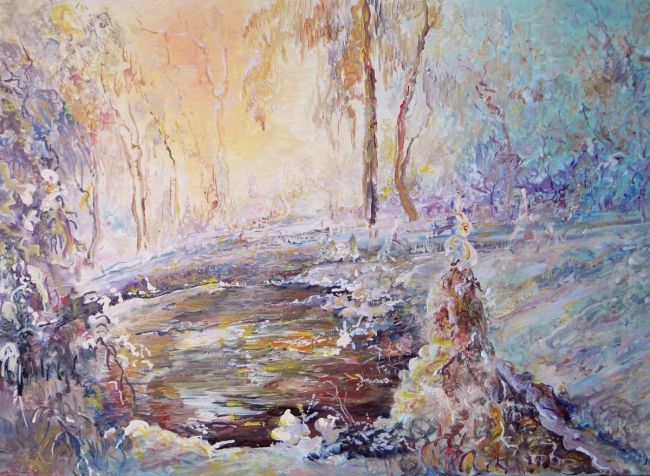 Impresja,wschód słońca w zimowym lesie-akryl-60x80-Kańtoch Mirosław ARTMI