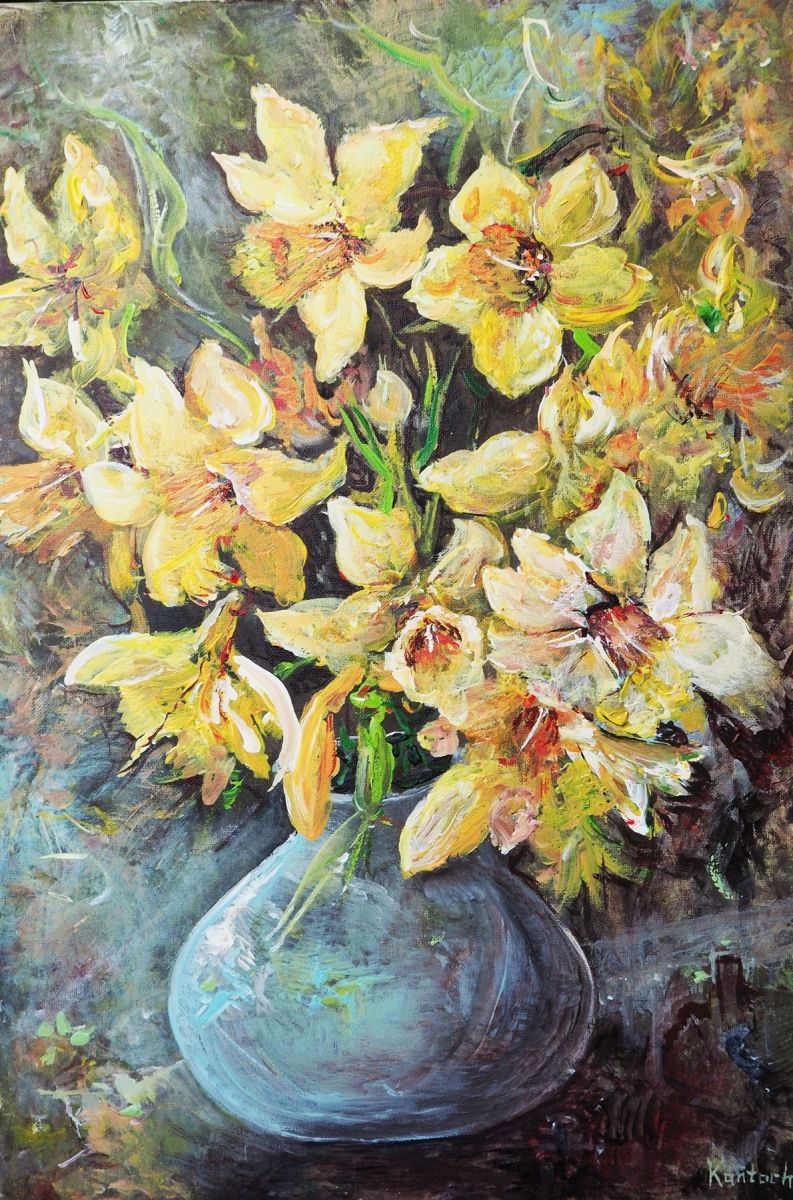Żonkile w niebieskim wazoniku-akryl-50x70-kańtoch Miroaław ARTMI