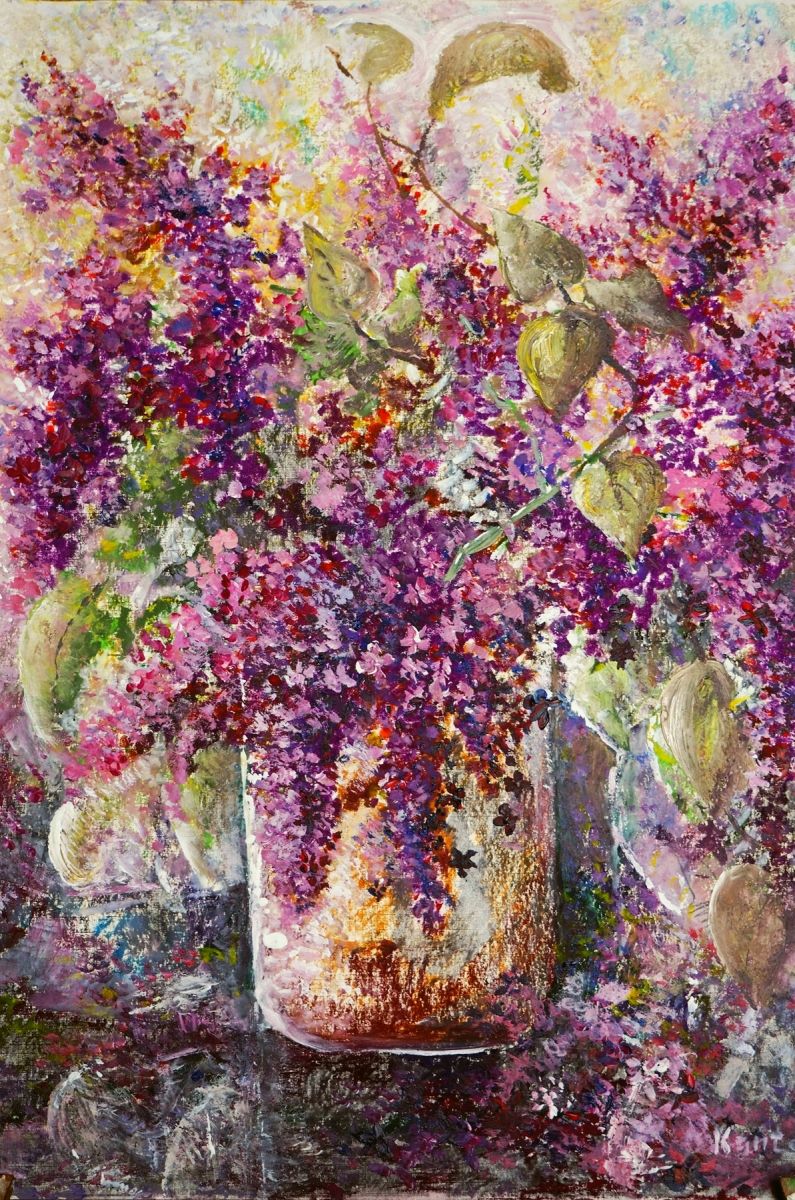Bzy w glinianym wazonie-tłusta pastel-50x70-Kańtoch Mirosław ARTMI