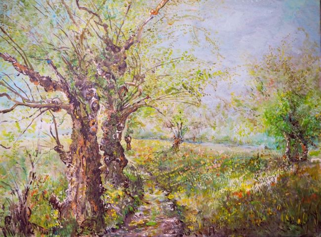 Wiosenny pejzaż z wierzbami-akryl-60x80-kańtoch Mirosław ARTMI