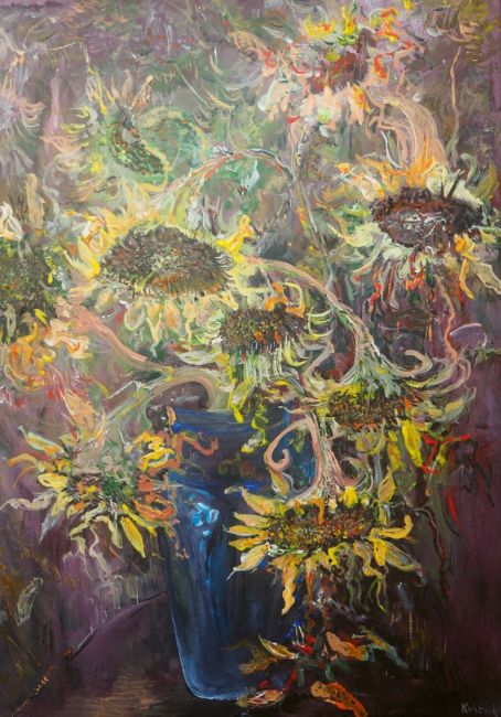 Słoneczniki w niebieskim wazonie-akryl-50x70-Kańtoch Mirosław ARTMI