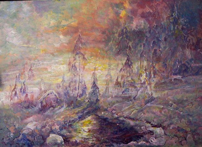 Impresja,zimowy zachód słońca-akryl-100x70-Kańtoch Mirosław ARTMI