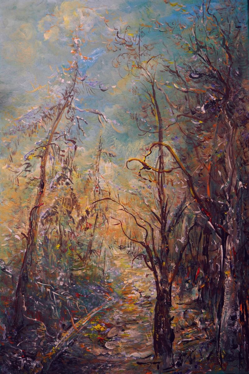 Impresja,poranek w lesie-akryl-60x40-Kańtoch Mirosław ARTMI