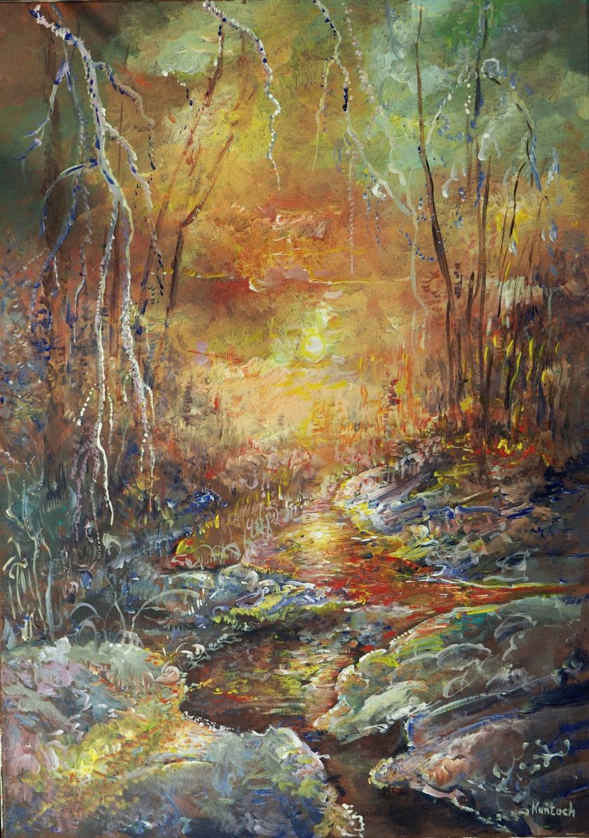 Impresja,leśny potok-akryl-70x50-Kańtoch Mirosław ARTMI