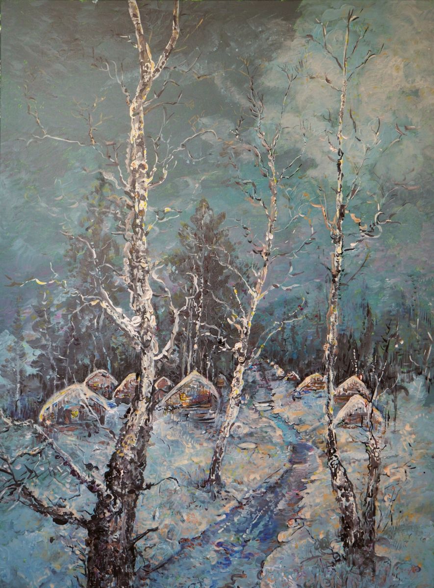 Zimowa wioska-akryl-100x70-podobrazie,płótno-Kańtoch Mirosław ARTMI