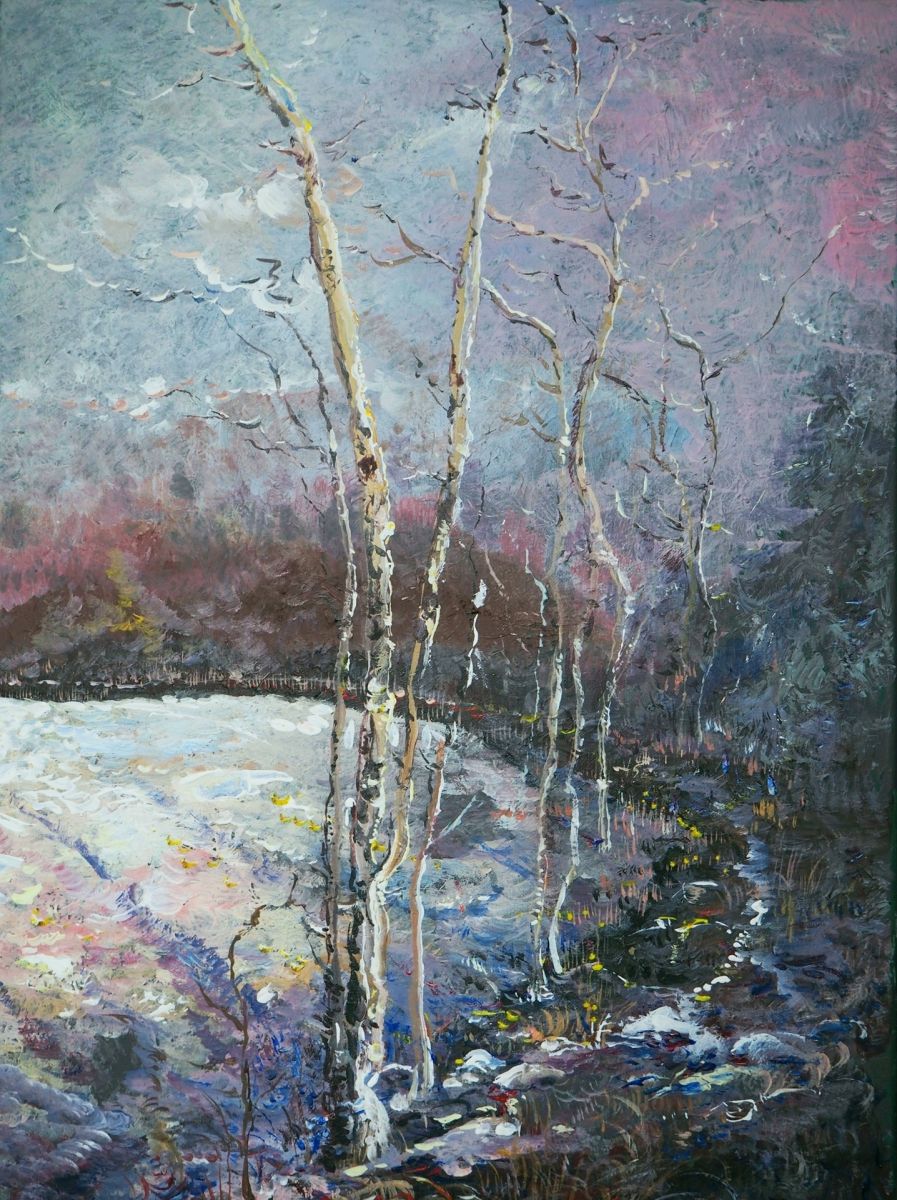 Pejzaż z brzozami-akryl-70x50-podobrazie,płótno-Kańtoch Mirosław ARTMI