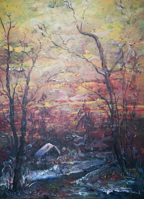Pejzaż zimowy IX-akryl-70x50-podobrazie,płótno-Kańtoch Mirosław ARTMI