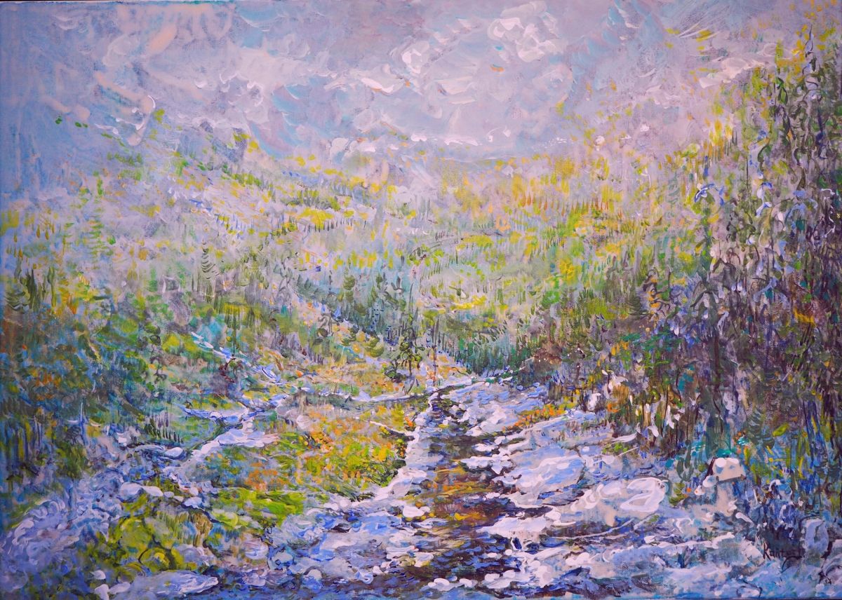 Impresja,przedwiośnie-potok górski-akryl-80x60-Kańtoch Mirosław ARTMI