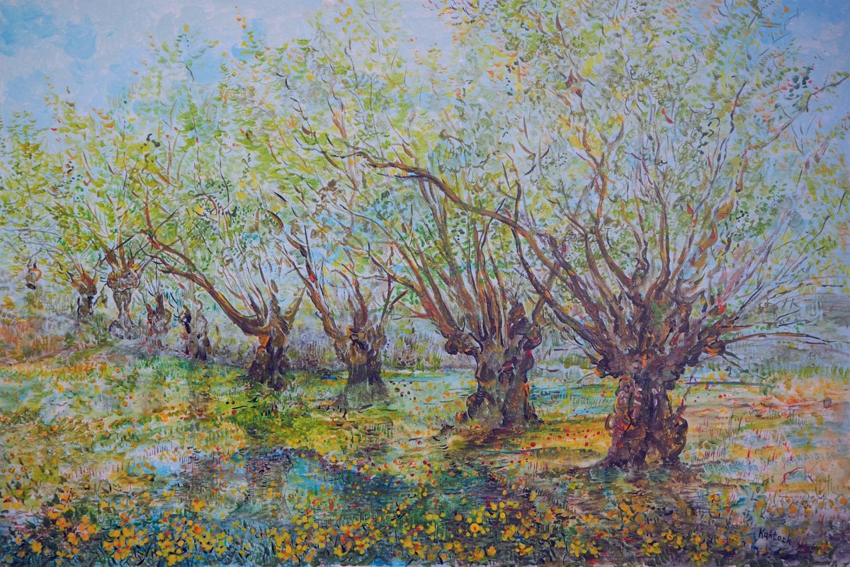 Wiosenne wierzby z kaczeńcami-akryl-90x60-podobrazie,płótno-Kańtoch Mirosław ARTMI