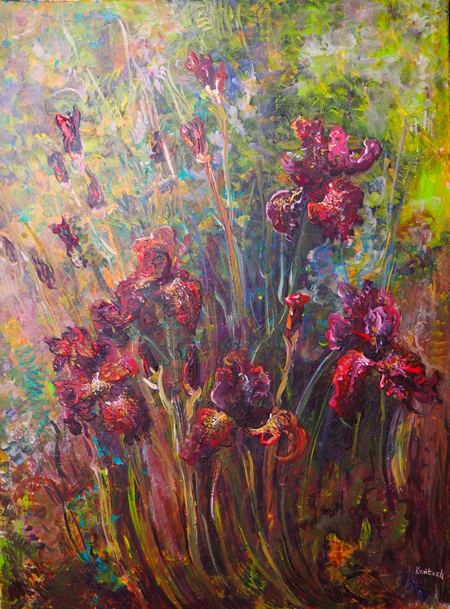 Burgundowe irysy-akryl-80x60-podobrazie,płótno-Kańtoch Mirosław ARTMI