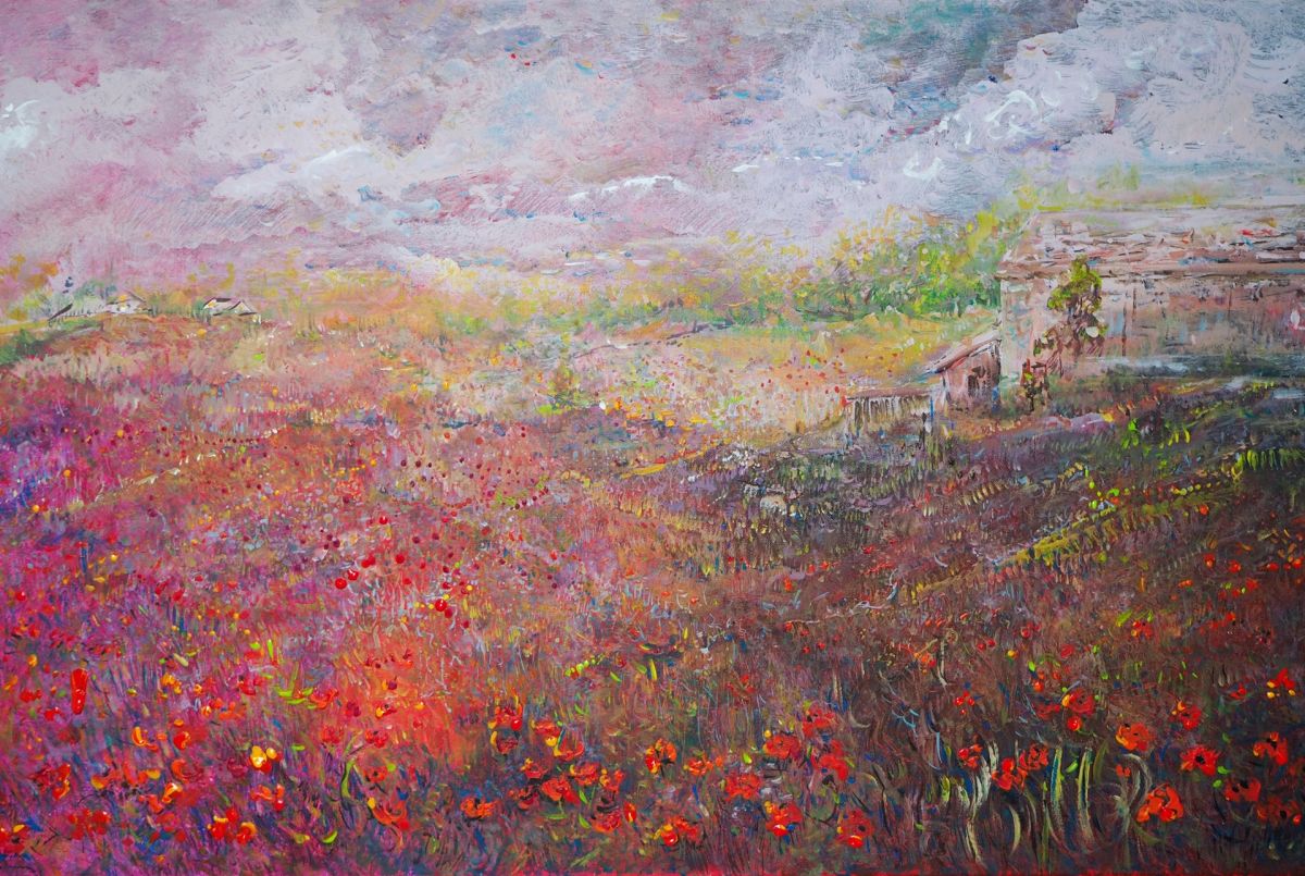 Impresja,makowe pole o zachodzie słońca-akryl-100x60-podobrazie,płótno-Kańtoch Mirosław ARTMI