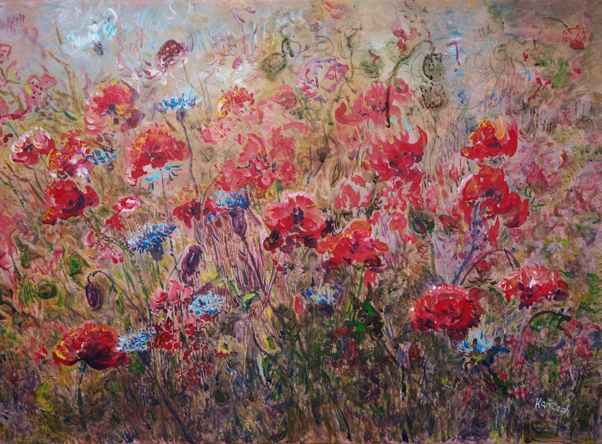 Polne maki z chabrami-akryl-60x40-podobrazie,płótno-Kańtoch Mirosław ARTMI
