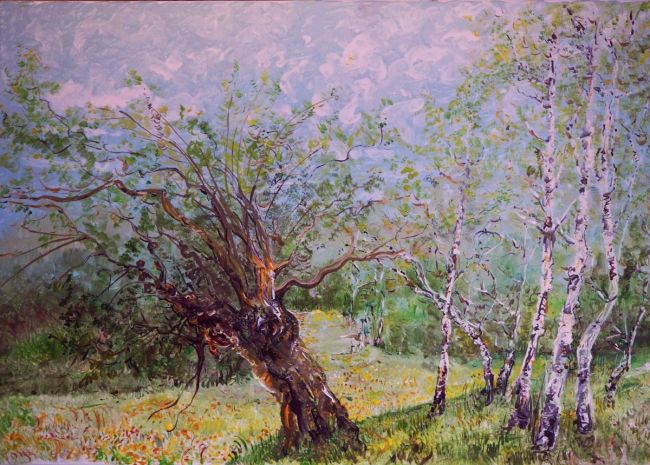 Łąka z brzozami i wierzbą rosochatą-akryl-70x50-Kańtoch Mirosław ARTMI