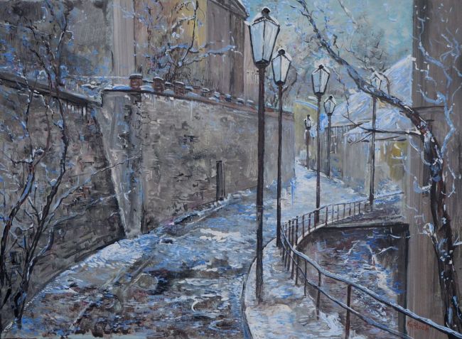 Zima nad Wenecją Cieszyńską-akryl-70x50-podobrazie,płótno-Kańtoch Mirosław ARTMI