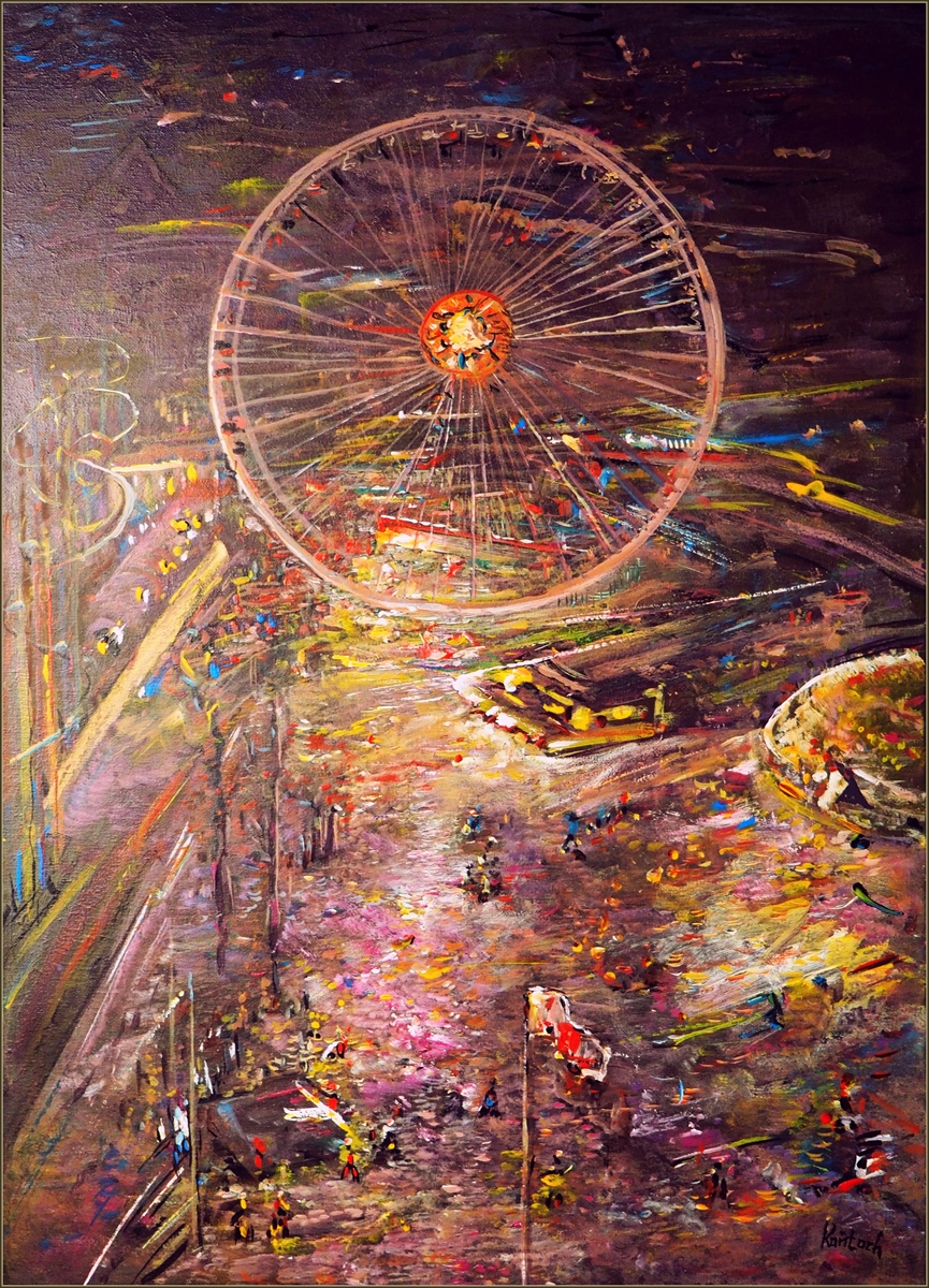 Impresja,Wiedeń,Park Prater wieczorową porą-akryl-70x50-Kańtoch Mirosław ARTMI-obraz znajduje się w prywatnej kolekcji